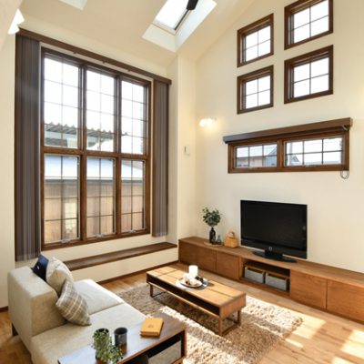 隣地との距離があまり無い中で、とても明るいリビングが実現。