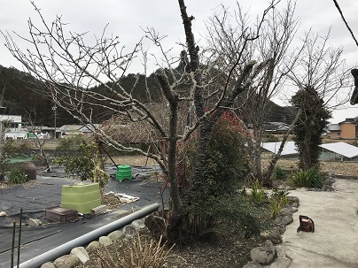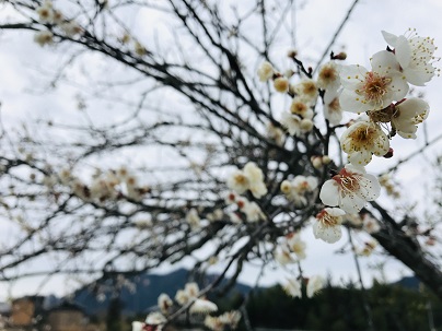 敷地内の梅の木はきれいに花をつけ始めました。