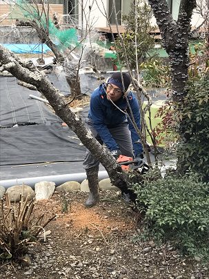 さて皆さんはお庭のお手入れされていますか?ガーデニングが好きな方は別として庭いじりっておっくうで後回しになりますよね、我が家では田舎の田畑に囲まれた土地なのであちらこちらに樹木が植わっております、今回は枯れてしまった桜の木の撤去です(母親に大分前から言われていたのですが・・・)3年前まではきれいな八重桜が見れたのですが、ほったらかしで枯らしてしまい残念な結果に、ありがとうと気持ちを込めてチェーンソーで伐採しました。