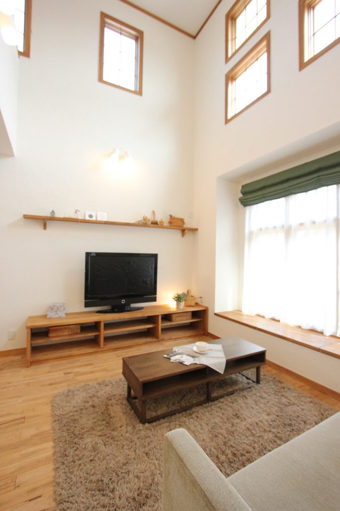 ダイニングからリビングへと移動すると、開放感のある吹き抜けの空間!