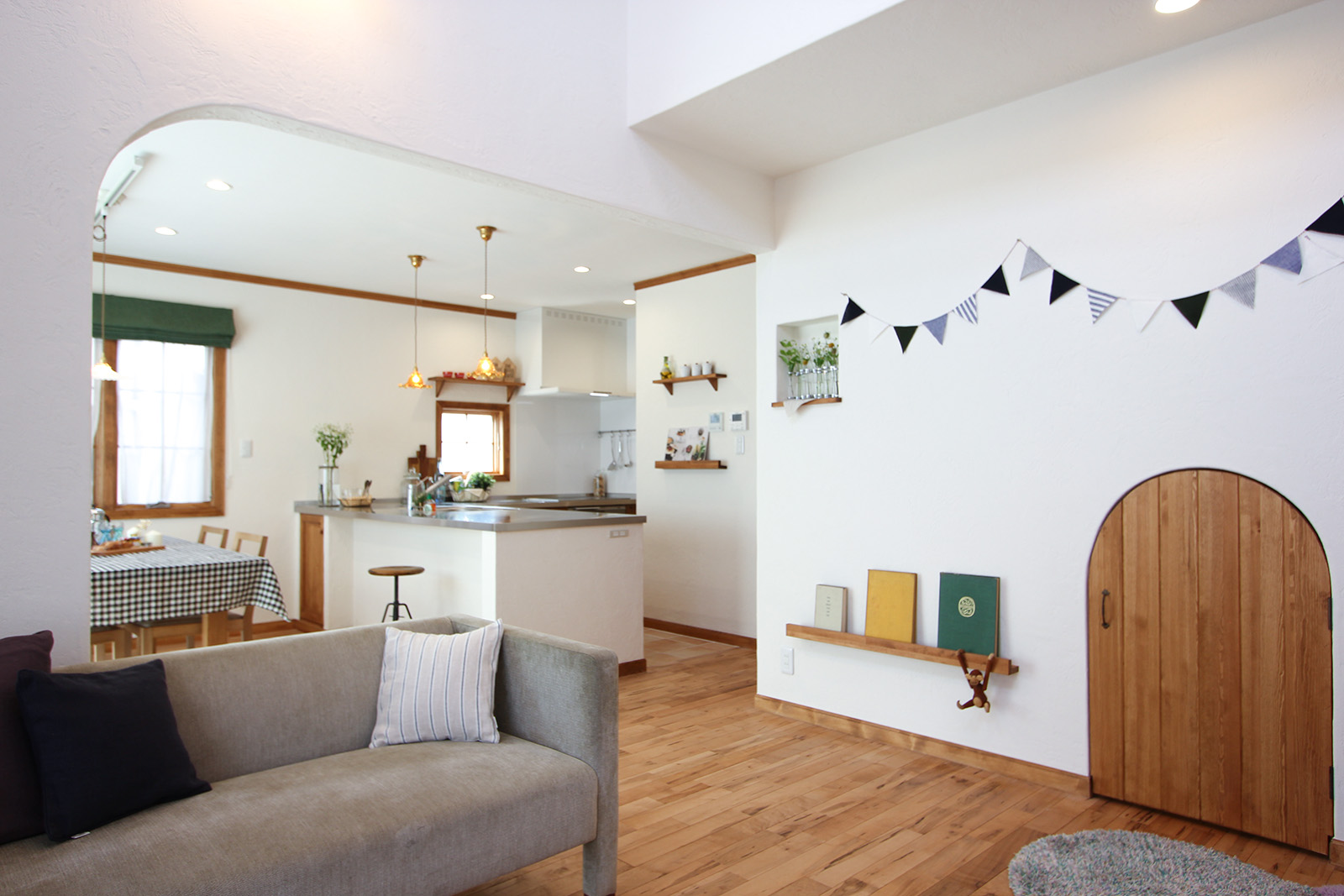 曲線の壁やアーチ型のドアがかわいいポイントになっています。