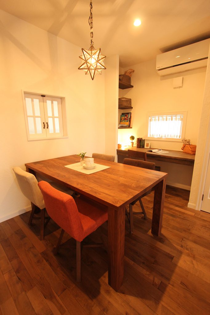 おうちカフェ風のリビングダイニング。雰囲気のある照明やバーカウンターがなんともおしゃれ。