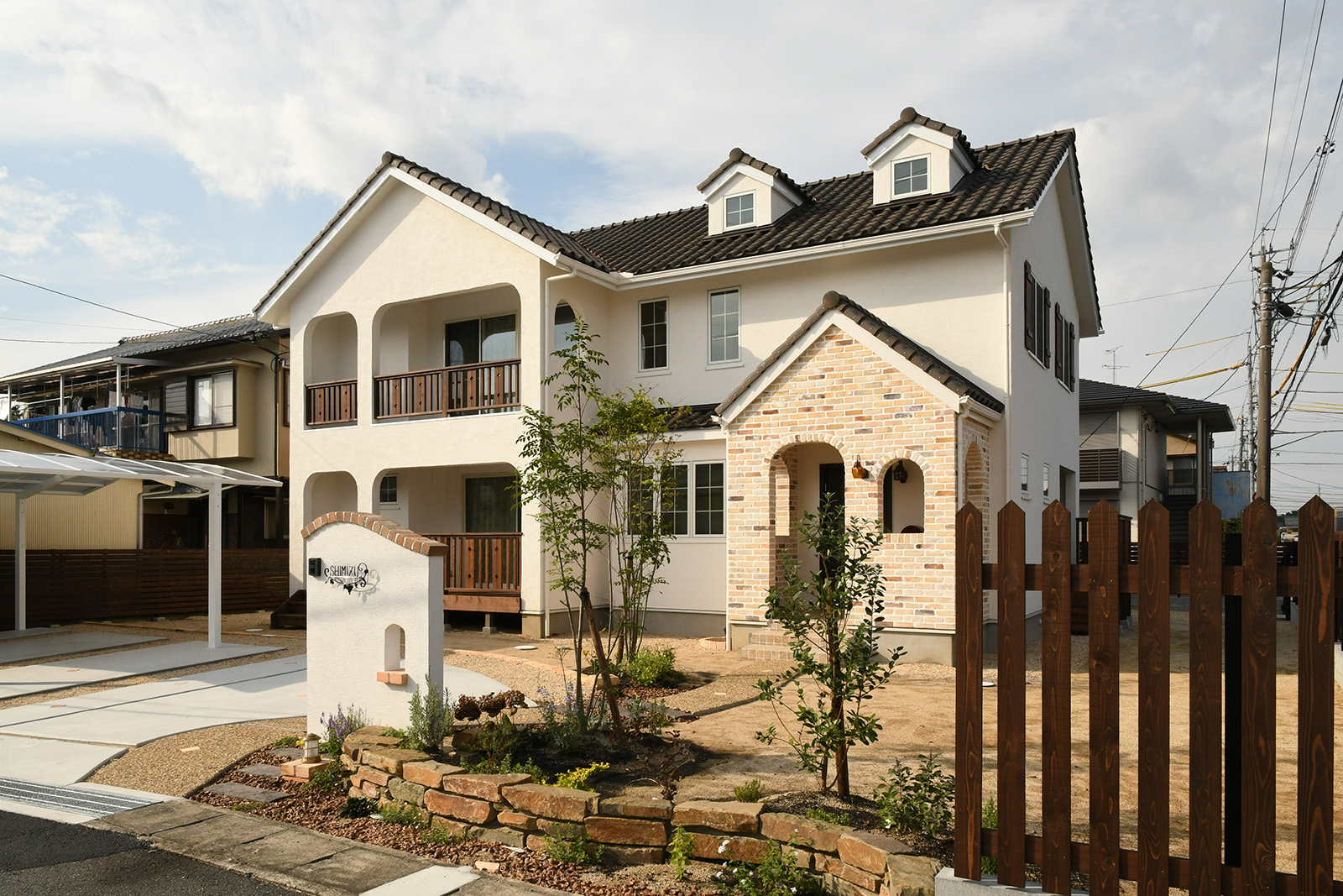 外観もアンティークレンガに漆喰塗り(エスタコウォール)が、上品でかわいい印象を与えます。