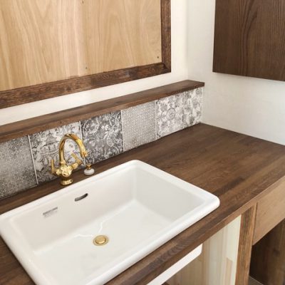 タイルの色や室内の色にもこだわりすてきなお家がもうすぐ完成します。
