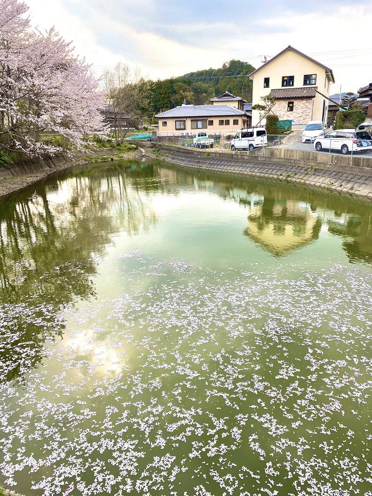 本日は三重県度会町の新築現場の確認に行ってきました、外部の足場も外れて薄黄色の漆喰はもちろんのこと玄関部のレンガ仕上げの壁もバッチリです、桜の時期と重なり隣の池には花びらの花筏、水面に移る新しいお家、何ともいい感じです。
