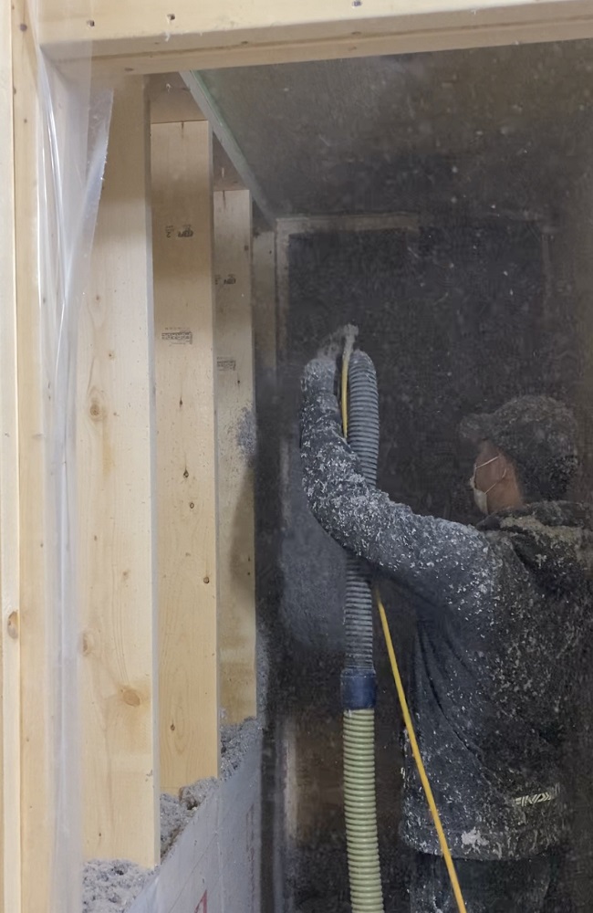 簡単そうに見える吹付作業も実際にさせてもらうと中々密着せずに難しいです。