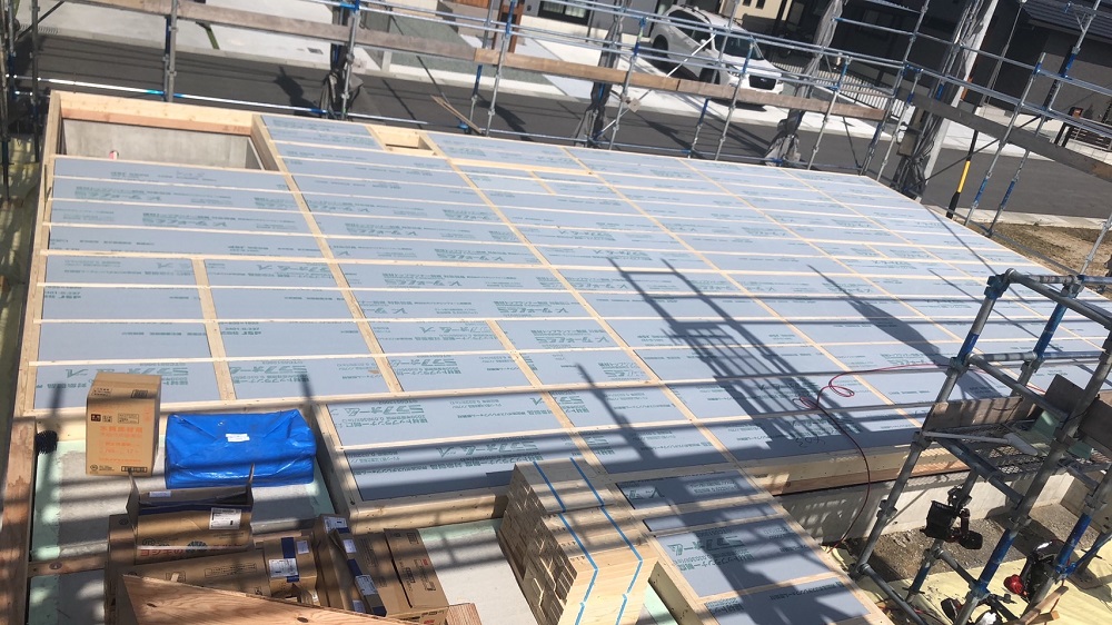 きれいに並べられた根太に断熱材、仕事の丁寧さが伝わってきます。