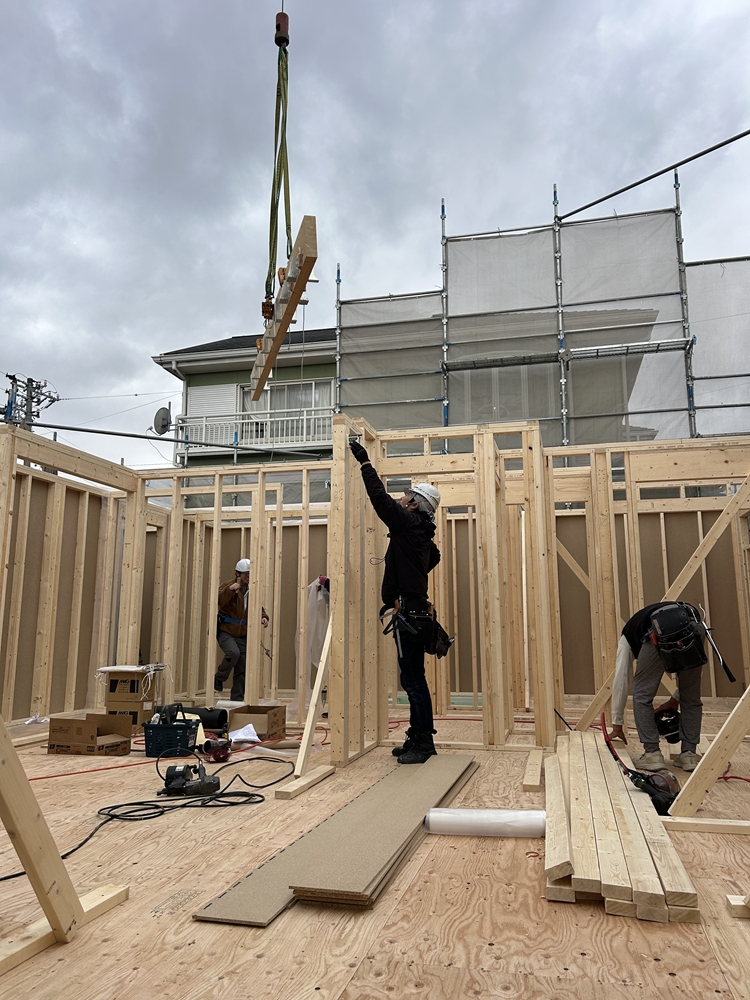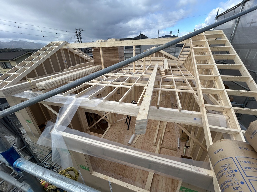 建て方工事も終わり造作工事のスタートです、職人の皆様引きつづきよろしくお願いします。