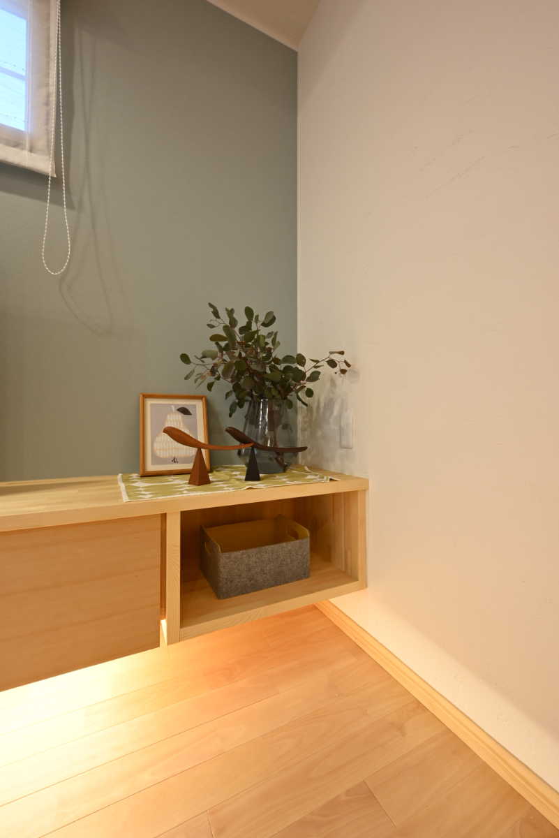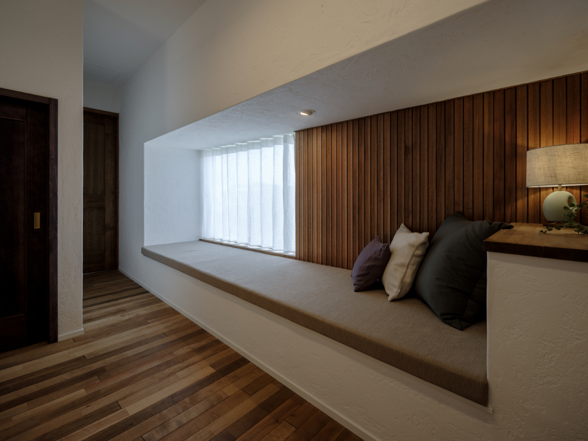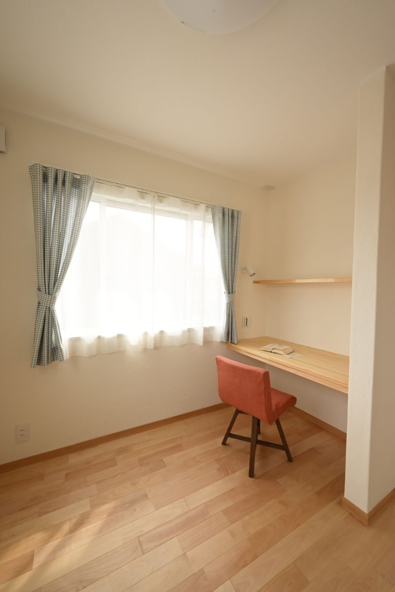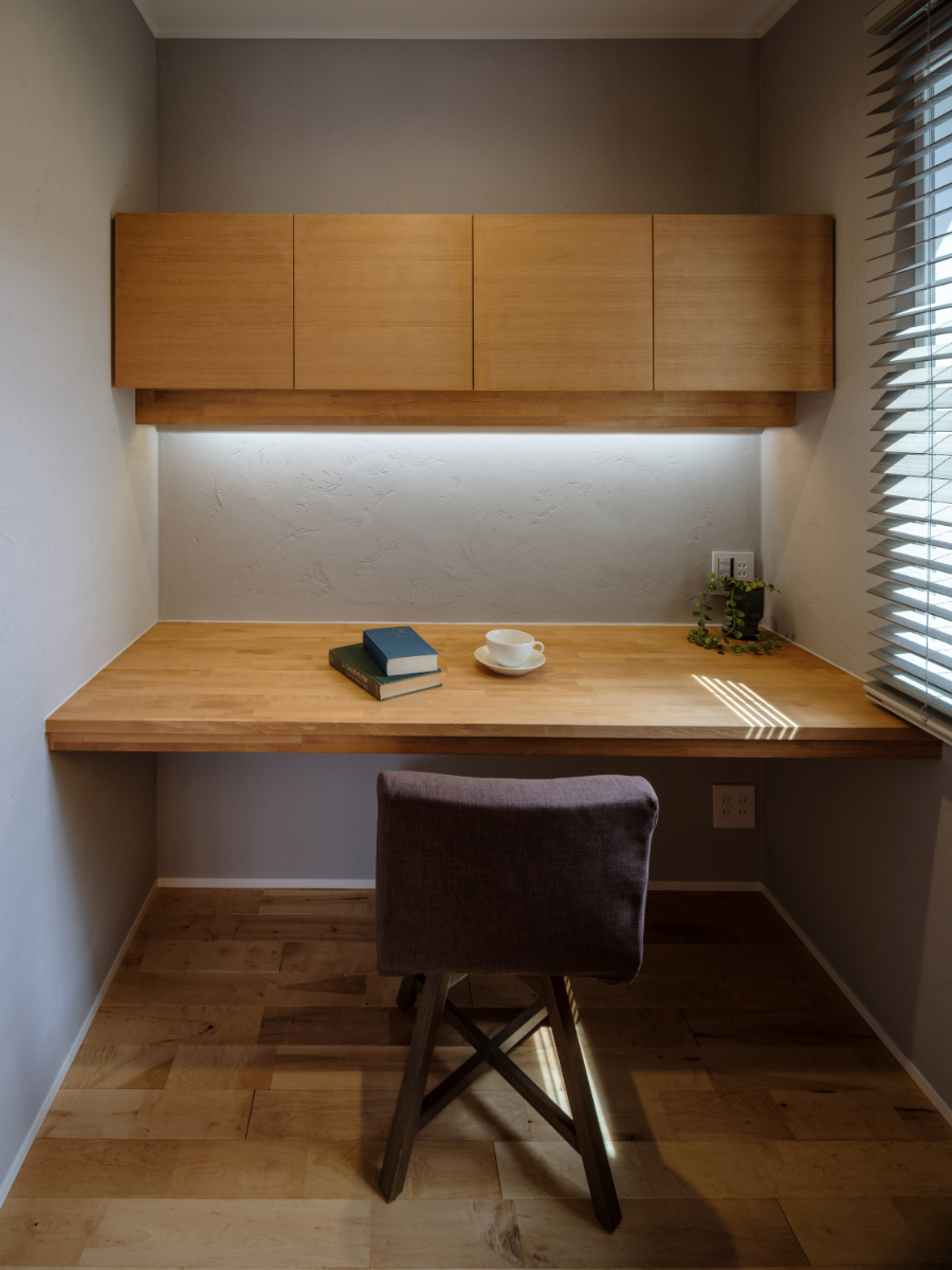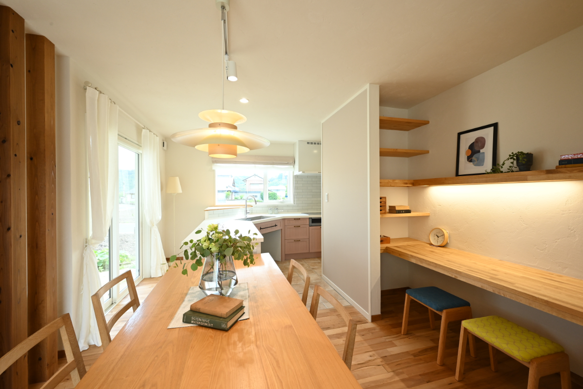 暮らしの道具として必要な収納やワークデスク、様々なアイテムを使いやすく、住空間に溶け込むように造り付けでご提案いたします。家具・カーテンもトータルでコーディネートし、居心地を満たす空間となります。