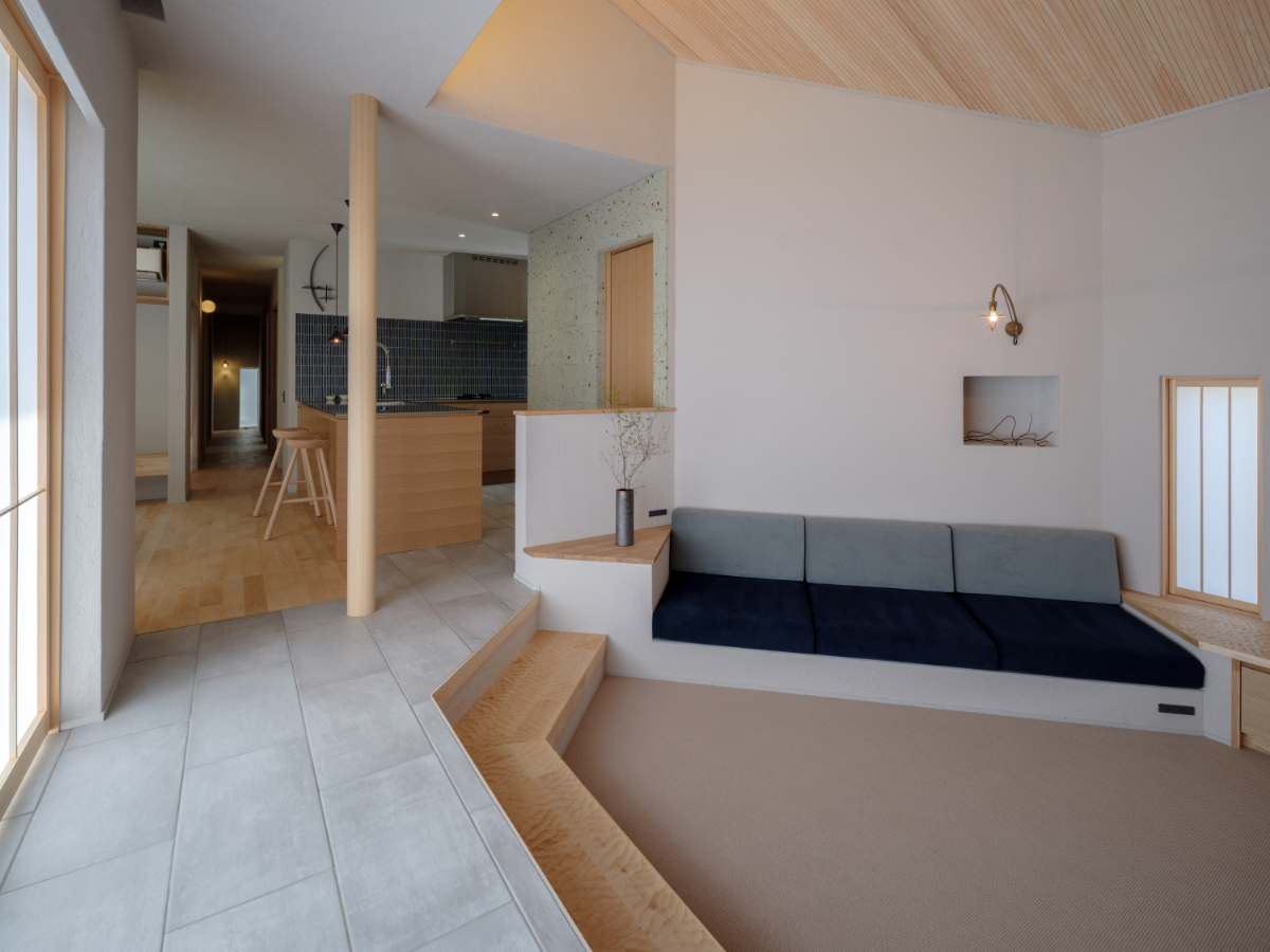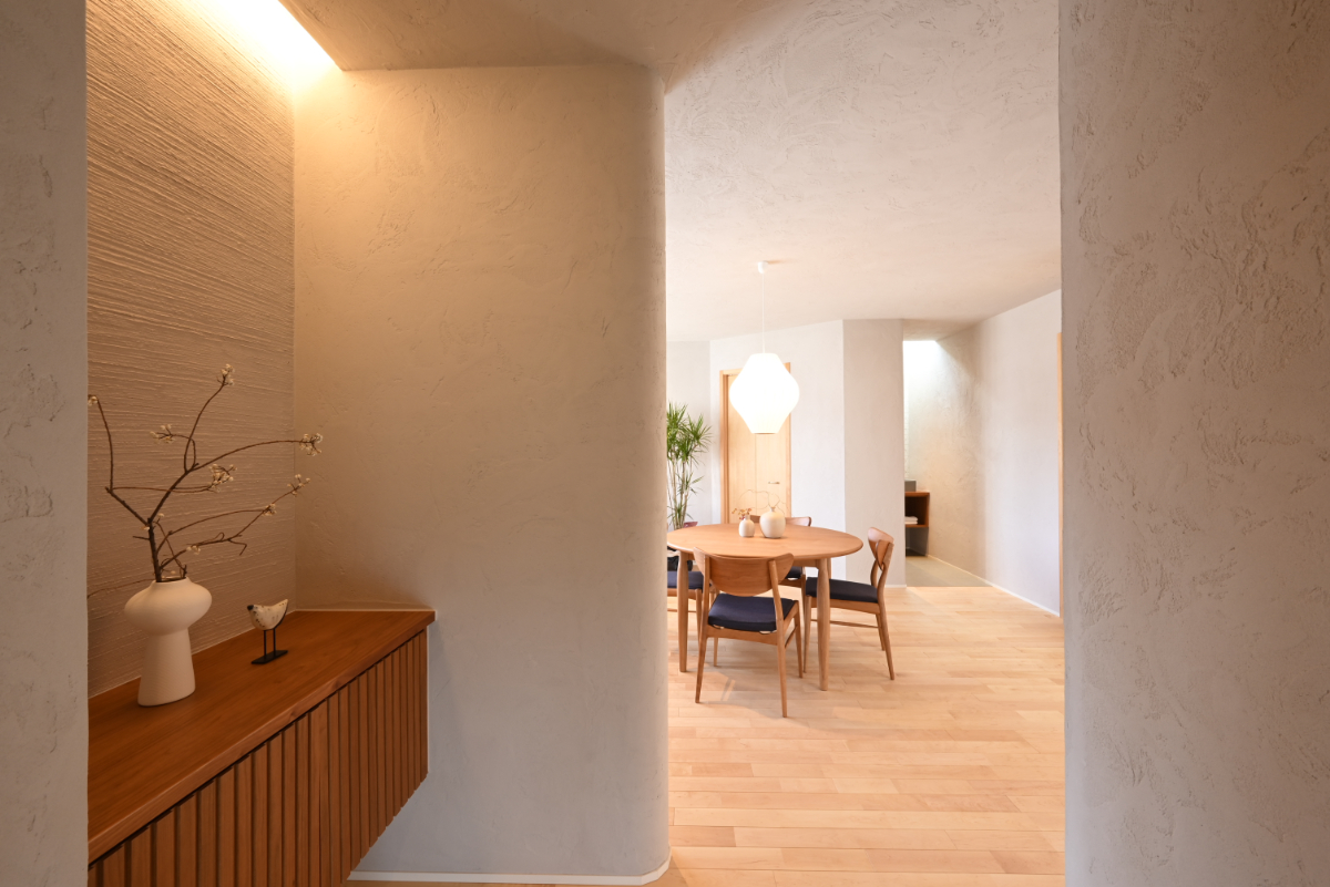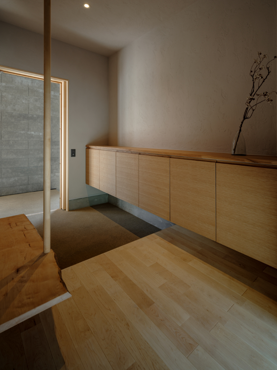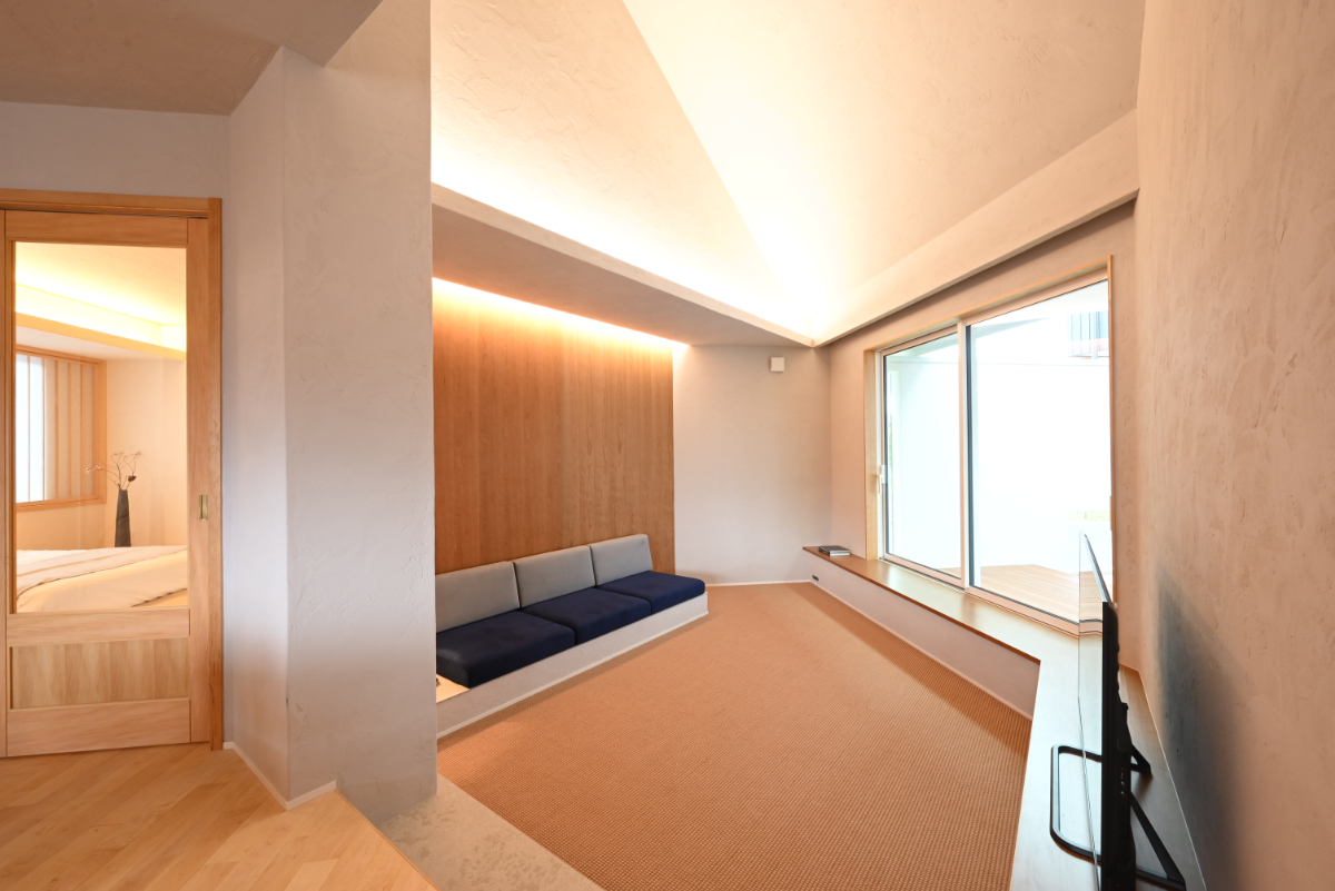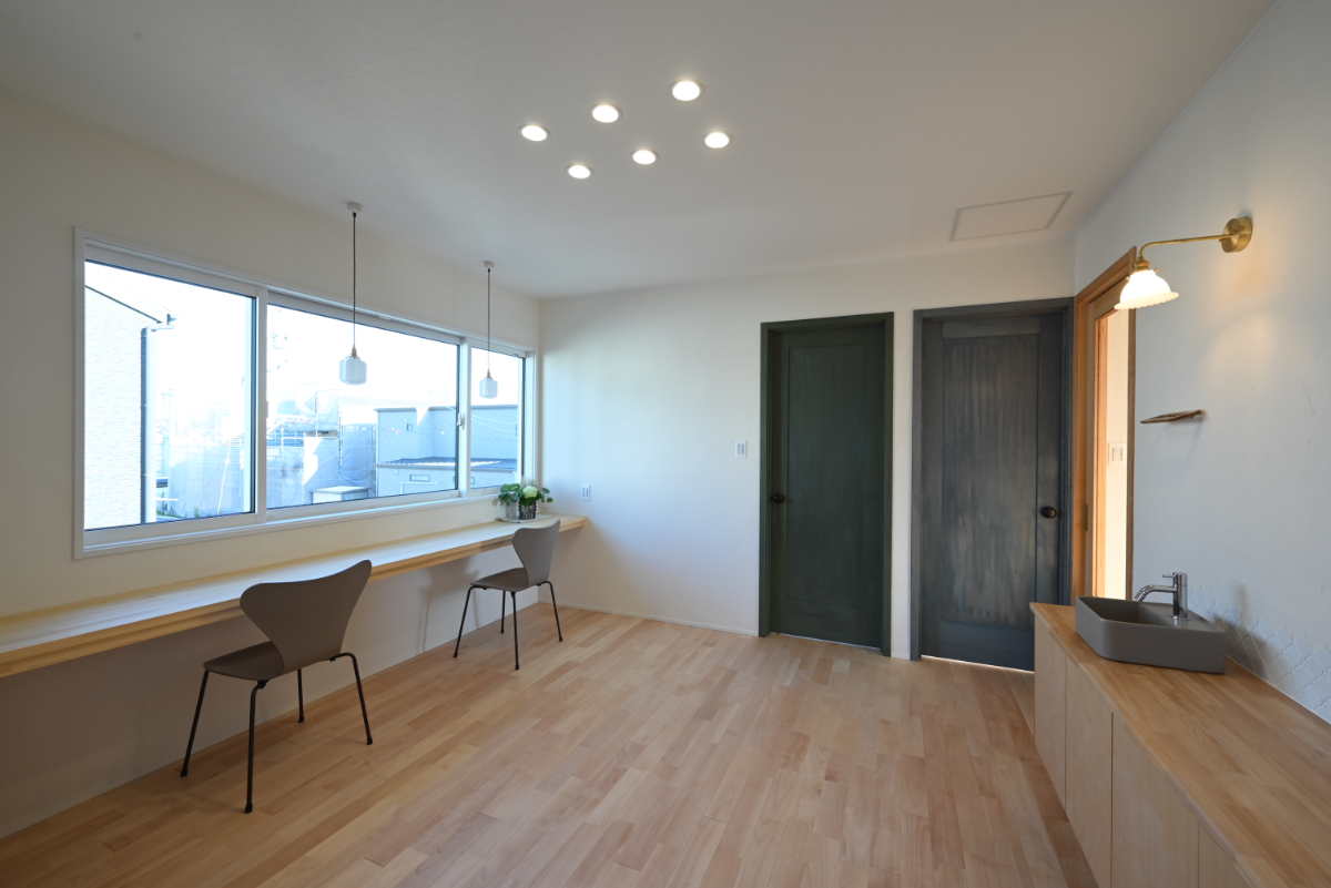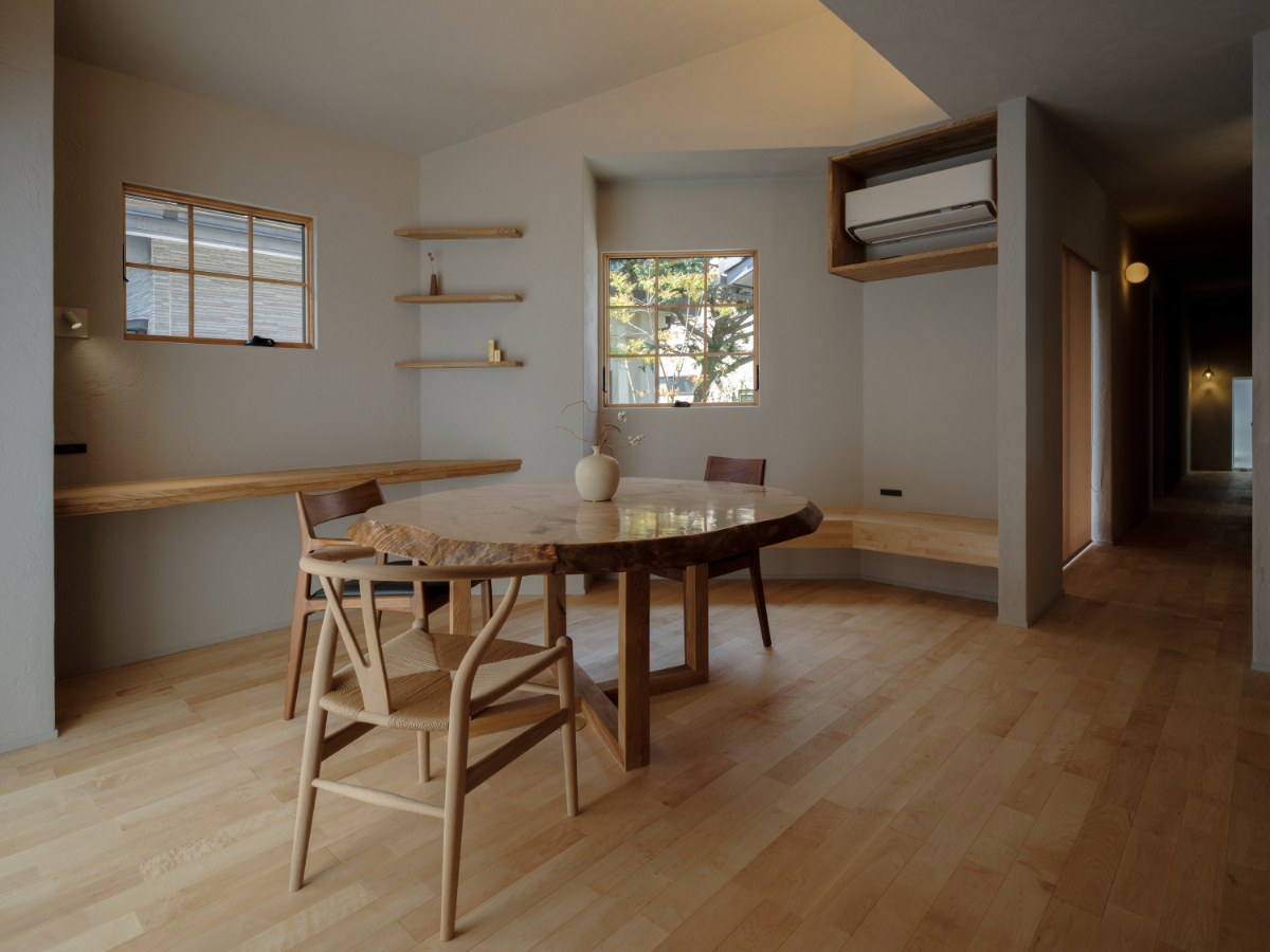 暮らしの道具として必要な収納やワークデスク、様々なアイテムを使いやすく、住空間に溶け込むように造り付けでご提案いたします。家具・カーテンもトータルでコーディネートし、居心地を満たす空間となります。