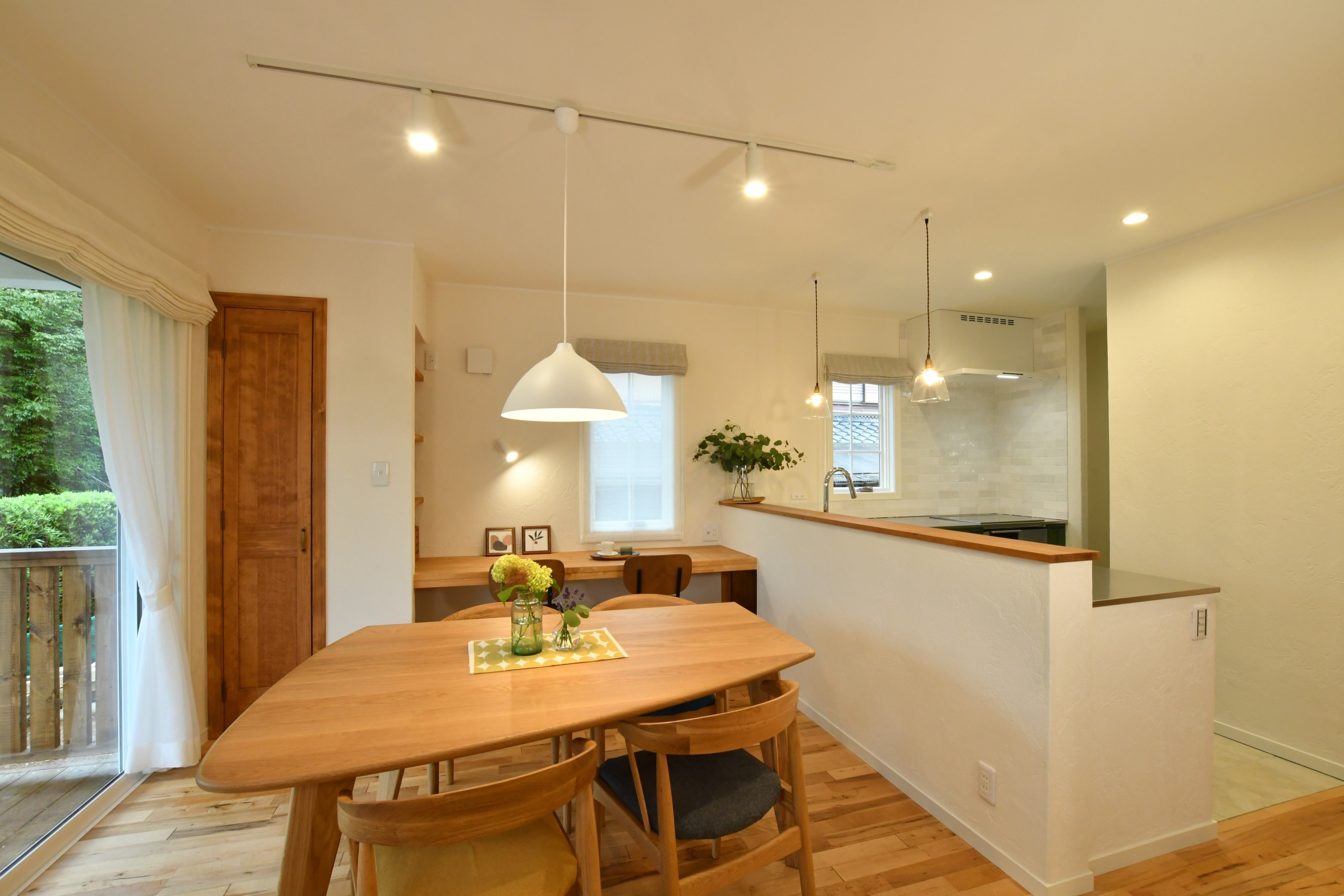 ダイニング横には、キッチンからいつでも目が届く場所にワークカウンターを造作。