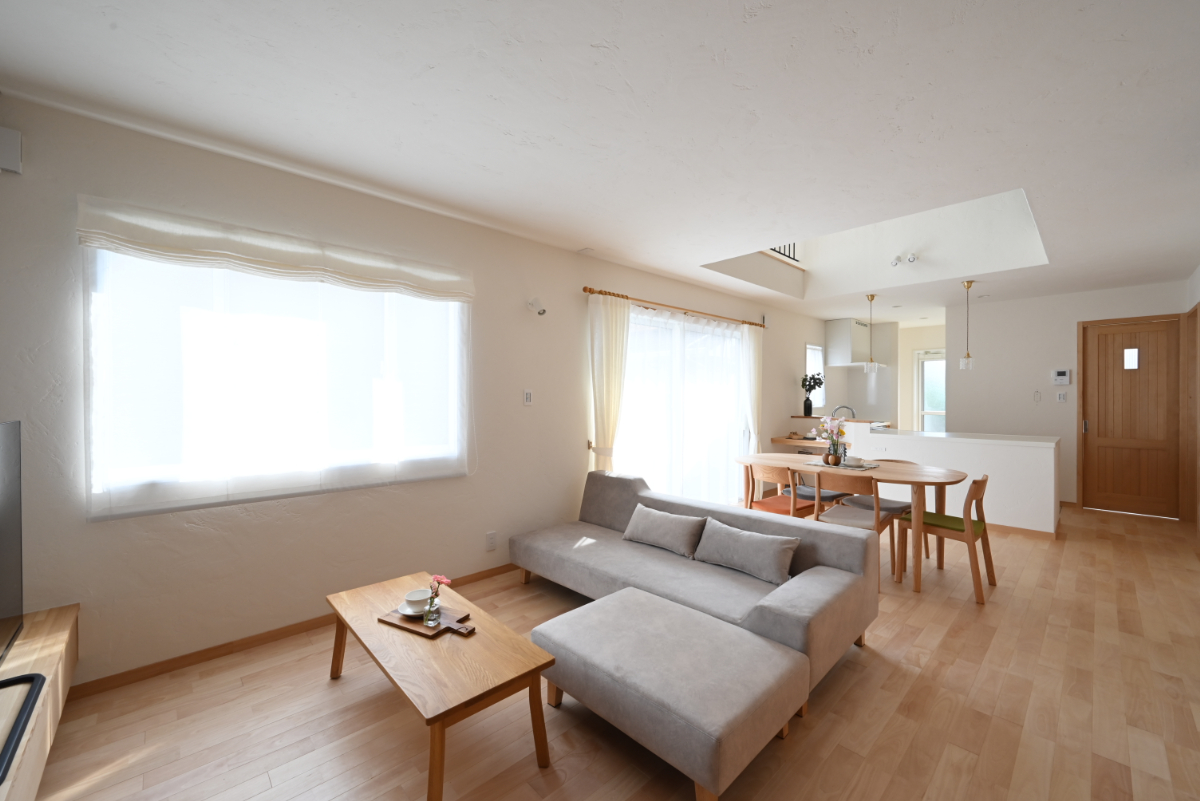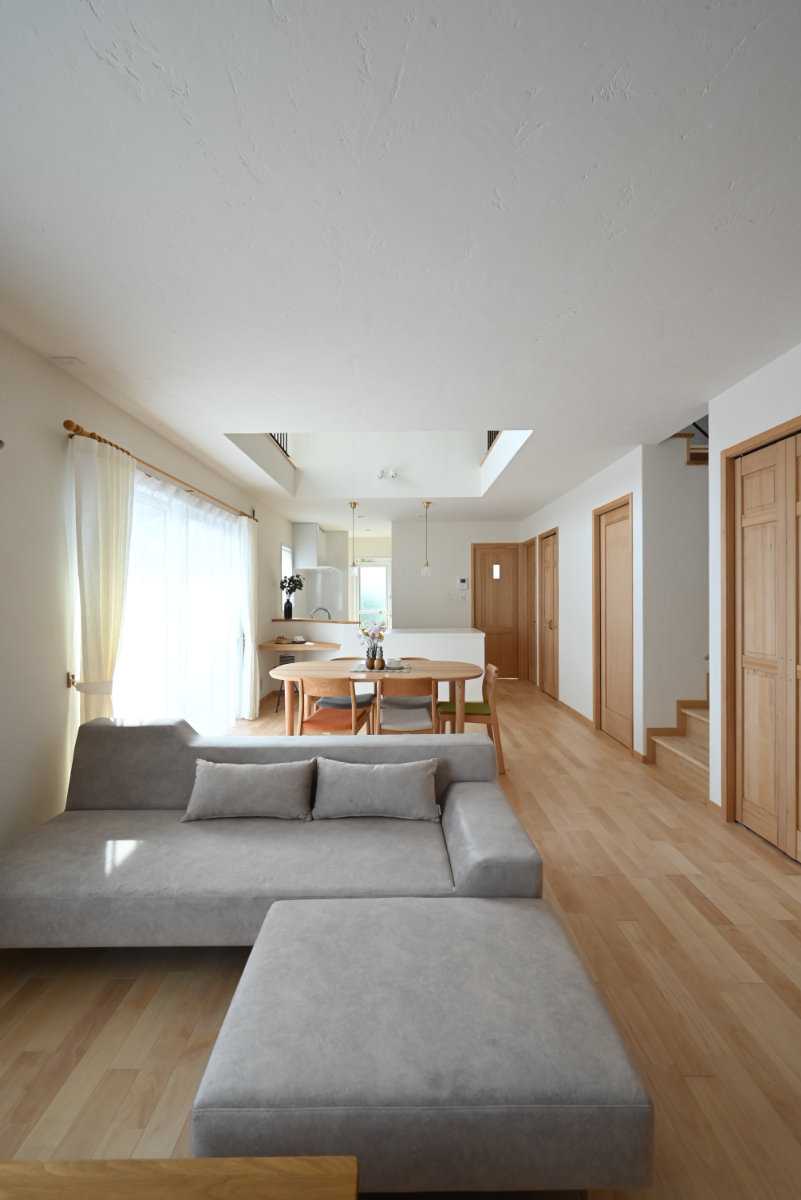ヨーロッパ漆喰は自然素材で身体に優しい塗り壁。耐久性に優れ、柔らかな表情の内観を表現しています。