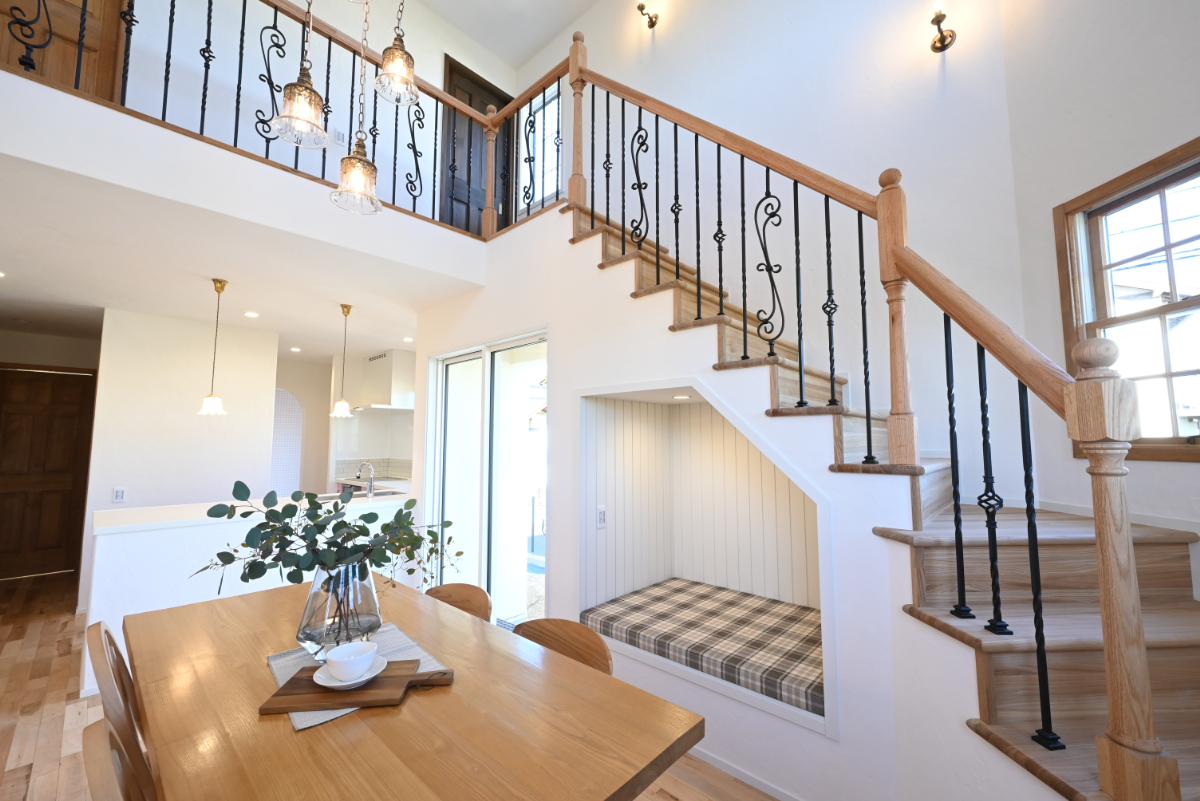 ヌックとは「居心地のいいこじんまりとした空間」。階段下のデッドスペースを利用してちょうどいいサイズ感で座った人を包むような空間に仕上げました。